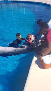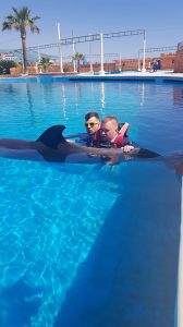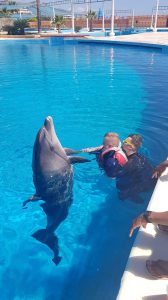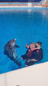 Yesterday I came back from Alanya where I lead dolphintherapy for The Good Village Foundation under the supervision of dr. Oksana Dąbrowska. Oksana is an author of dolphintherapy programme helping children with autism, cerebral palsy, developmental delay and other disorders. During the session children may throw a ringo, touch a delfin, watch it dancing and hear it singing. Sonarring has a beneficial effect on a cell level. Usually a session finishes with jumps and waving goodbye what you can see on movies above! ?