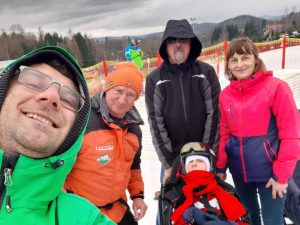 Zeszły tydzień spędziłem w Lądku Zdroju, pomagając prezesce Fundacji – dr Oksanie Dąbrowskiej – podczas jej turnusu narciarstwa rehabilitacyjnego w Lądku Zdroju. Jest to rozszerzenie naszej współpracy przy delfinoterapii w Turcji – Alanyi i Kusadasi. Pierwsze turnusy nartoterapii rozpoczynają się na początku stycznia, a ostatnie w połowie lutego. W zajęciach uczestniczyły zarówno dzieci z lekką, jak i głębszą niepełnosprawnością. Jeżeli warunki fizyczne na to pozwalają, osoby np z zaburzeniami ze spektrum autyzmu uczą się jeździć z instruktorkami Fundacji – Izą oraz Dominiką. Można je łatwo rozpoznać na stoku dzięki charakterystycznym zielonym kurtkom z logo fundacji: