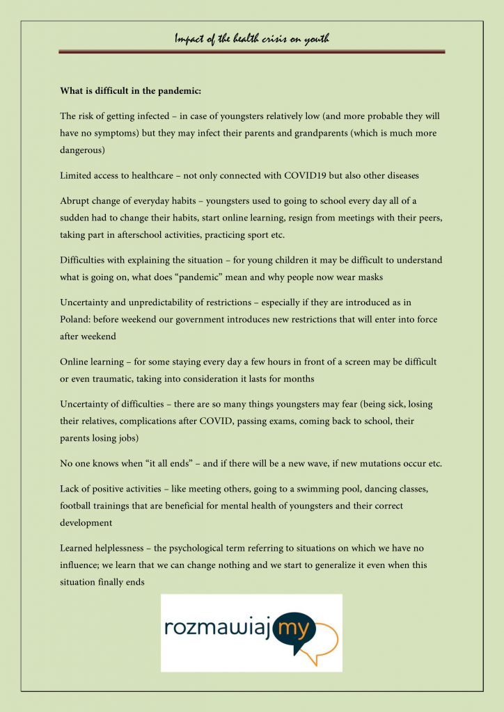 As as psychologist already dealing with the influence of COVID-19 pandemic on adults I was selected to lead the first topic mentioned. My thoughts and conclusions are gathered here: