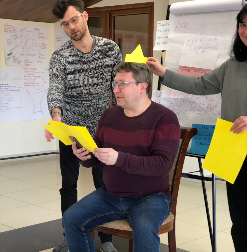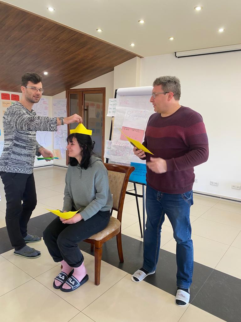 What was unusual about this training was the fact that the facilitator Katsia got seriously the idea of training for trainers and one day and a half was devoted to practice sessions. Having experience with critical thinkig methods (and not willing to experiment with untested ones) I suggested the Six Thinking Hats by Edward de Bono: