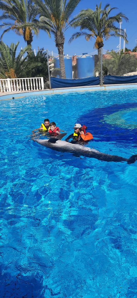 Ale wracając do meritum – pierwszą sesję na turnusie poprowadziłem jedenastego czerwca, a ostatnią – jedenastego lipca. Wyjazd umożliwiło mi rozłożenie zajęć na dwu uczelniach, na których pracuję na co dzień. Zajęcia w Akademii Ekonomiczno-Humanistycznej skończyłem już pod koniec maja, natomiast w Wyższej Szkole Bankowej został mi ostatni zjazd (ośmiogodzinny, przeprowadzony online) dwudziestego piątego czerwca. Większość dzieci obecnych na delfinoterapii była zdiagnozowana w kierunku zaburzeń ze spektrum autyzmu, mózgowego porażenia dziecięcego oraz zespołu Downa. Podczas turnusu miałem przyjemność pływać z dziećmi, z którymi pływałem już w zeszłych latach.