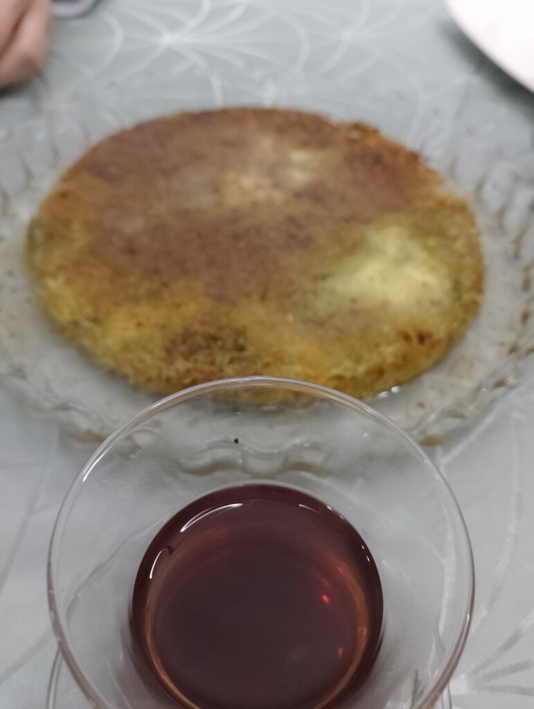 This year I was hosted by Elif Dinara and her husband from Turkey in their home in Raszyn. My friend Ilkay Karabacak was also invited – it was the second time we met each other at the Iftar supper (you can read about the first time in here). We talked about studies (Elif finished her studies in Poland – she graduated from the Polish-Japanese Academy of Information Technology), cultural differences between our countries, a little bit – but not much – about politics etc. What I need to mention is the Turkish food we were eating. We started with the typical Turkish lentils soup, than the main course – chicken, rice, salad with optional spicy peppers (at first when I was working in Turkey I found them too spicy but later I got accustomed to and now I cannot imagine Turkish food without them ), and what was the most impressive – the home-made künefe dessert. It was prepared with flower threads looking like rice pasta, butter at the bottom, mozarella inside (the typical Turkish cheese is not available in here and mozarella is suprisingly for me considered by Turks as an example of „tastelees” cheese), some pistachios and all poured with syrup and heated until crispy.